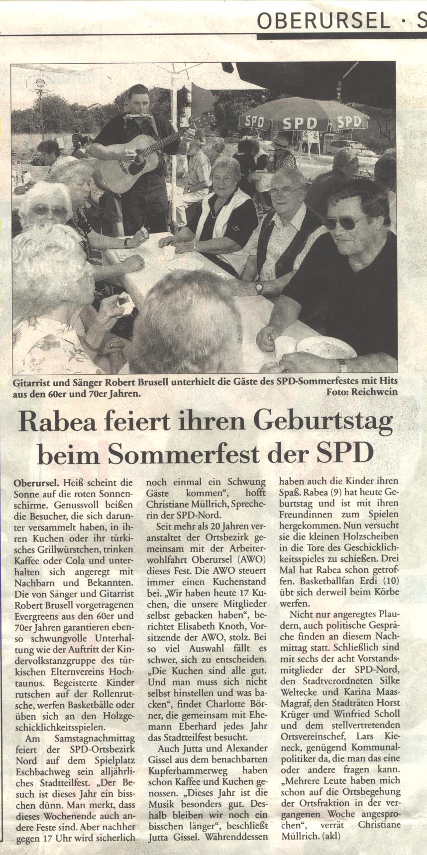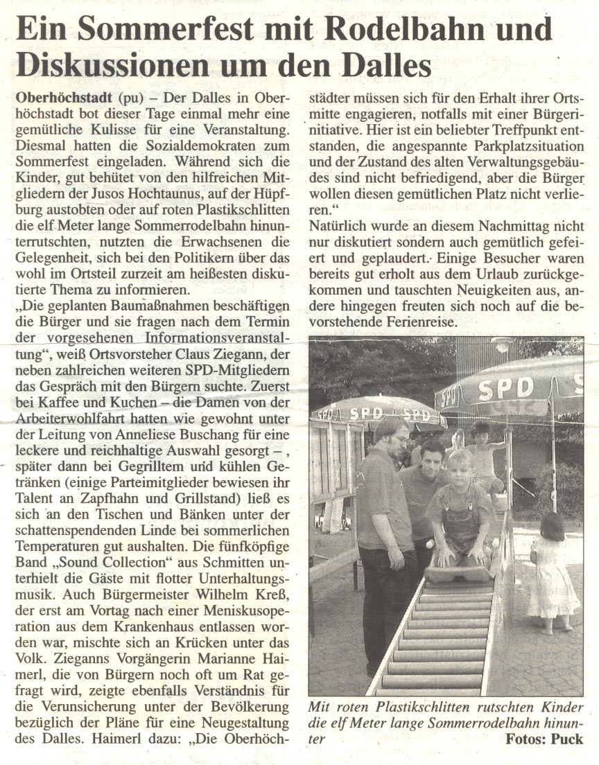 Taunus Zeitung - 14. Juli 2004 - Ein Sommerfest mit Rodelbahn und Diskussionen um den Dalles