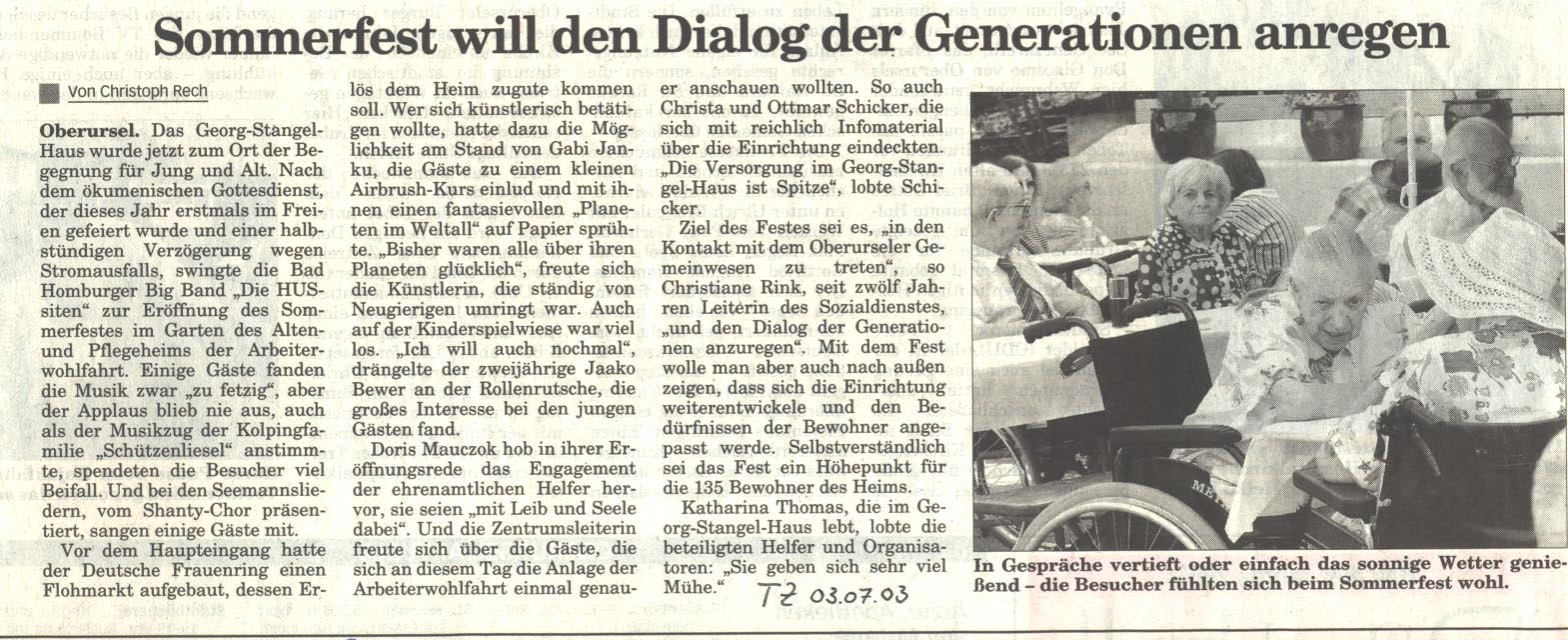 Taunus Zeitung - 28. August 2003 - Sommerfest will den Dialog der Generationen anregen