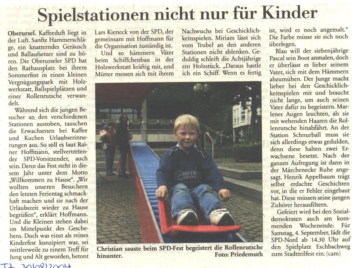 Taunus Zeitung - 08. September 2004 - Spielstation nicht nur für Kinder